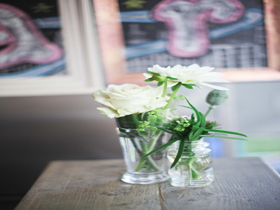 Witte bloemen in glas